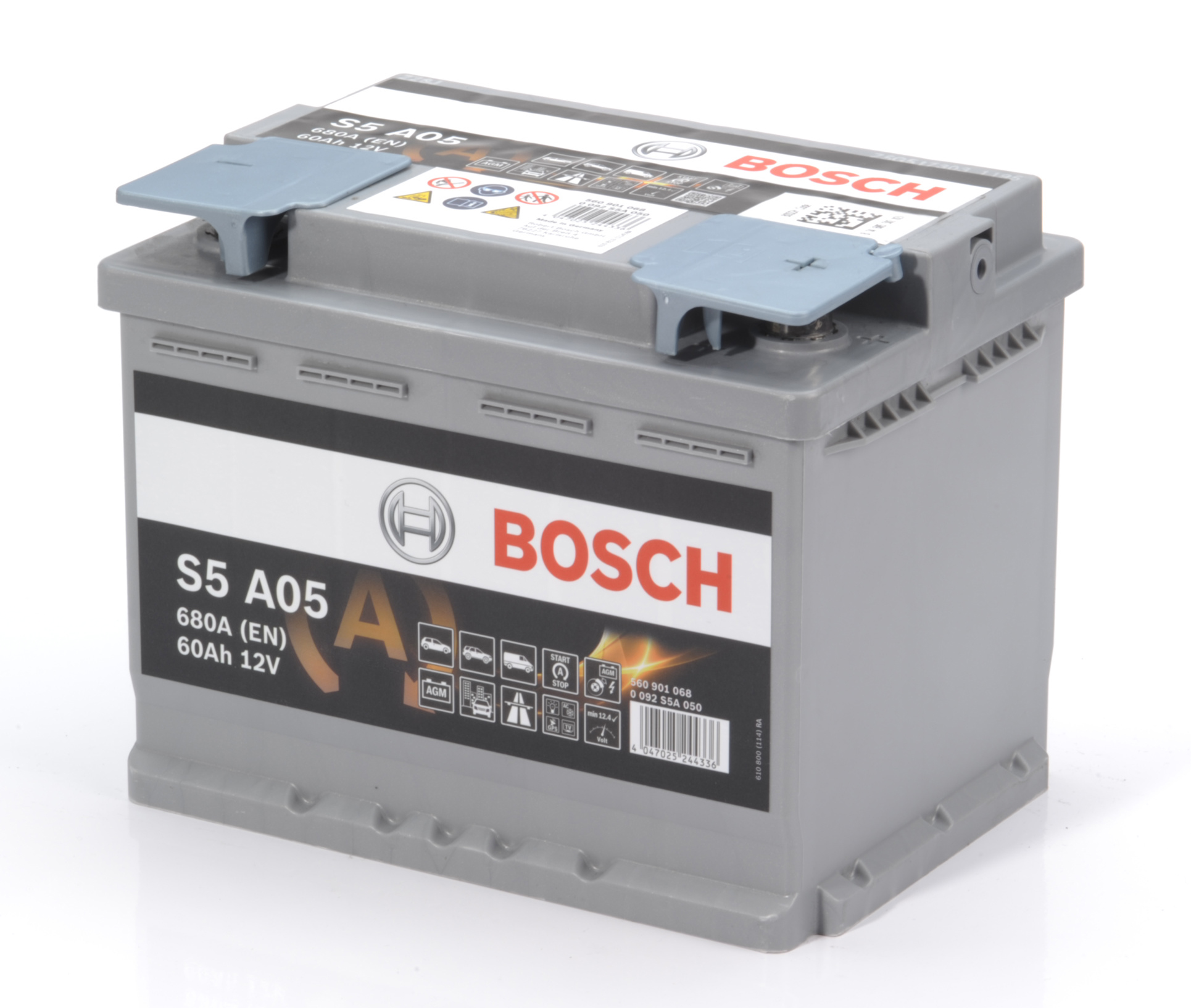 Batterie BOSCH S5 AGM 12V 60Ah 680A – Réf. S5A05 / 0092S5A050