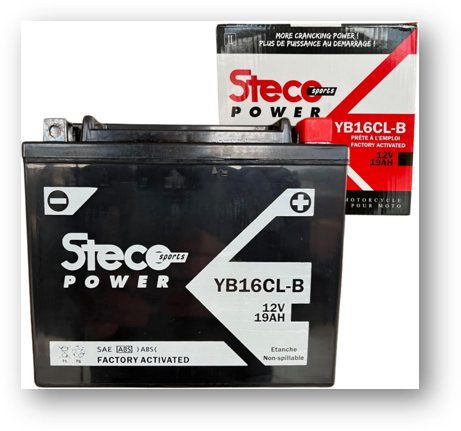 Batterie Moto Steco YB16C-LB – 12V 19Ah 240A +D DD – Performance et robustesse prêtes à l’emploi