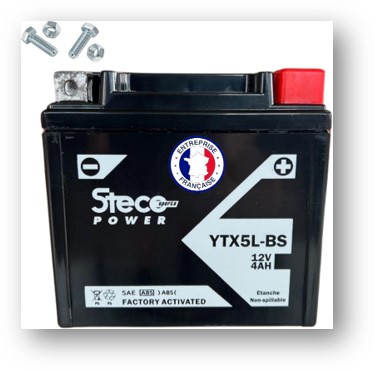 Batterie Moto Steco YB5L-B – 12V 5Ah 55A +D – Compacte, fiable et sans entretien (YTX5L-BS)